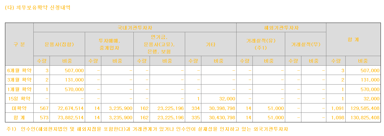 의무보유 확약비율 역시 잘된 공모주와 비교조차 되지 않습니다.