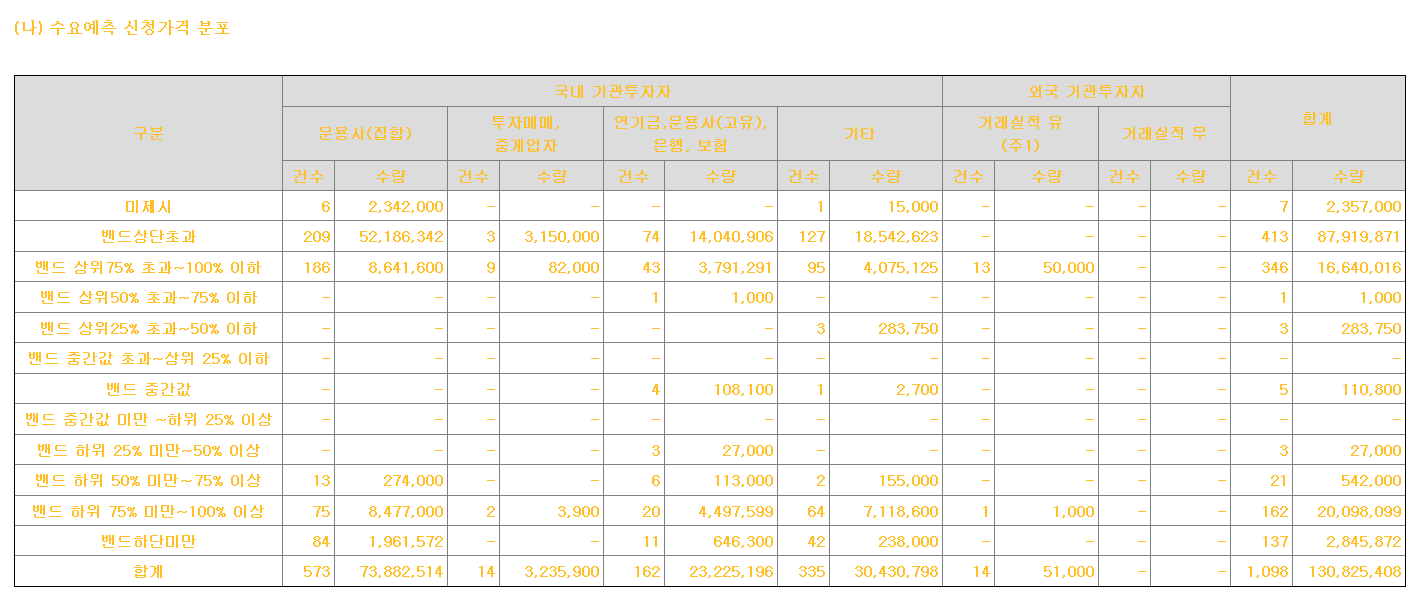 수요예측 결과가 좋은 다른 공모주와 비교를 하면 얼마나 최악인지 알 수 있습니다.