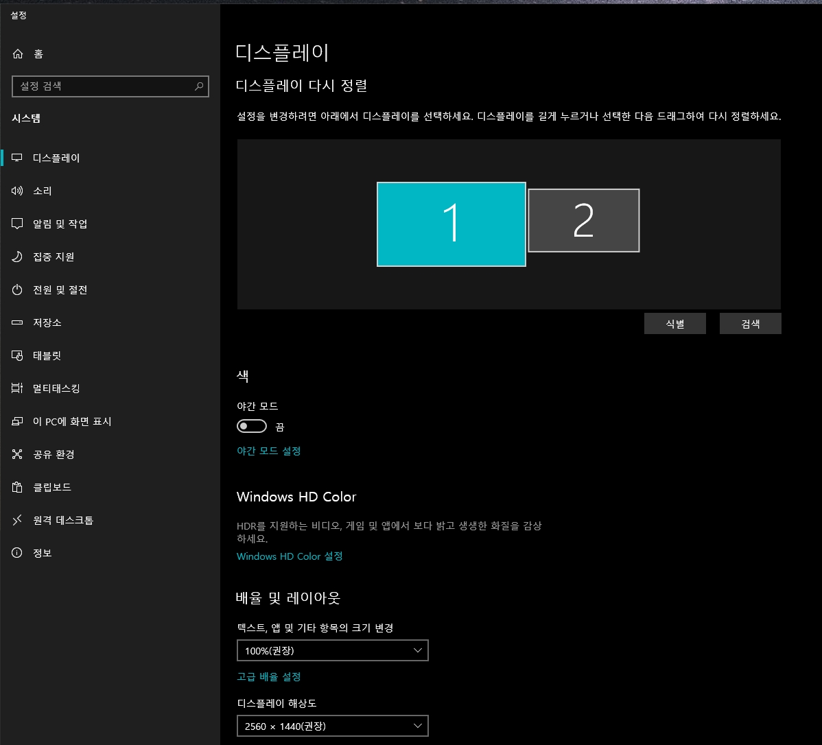 2. 듀얼모니터 식별번호 바꾸기