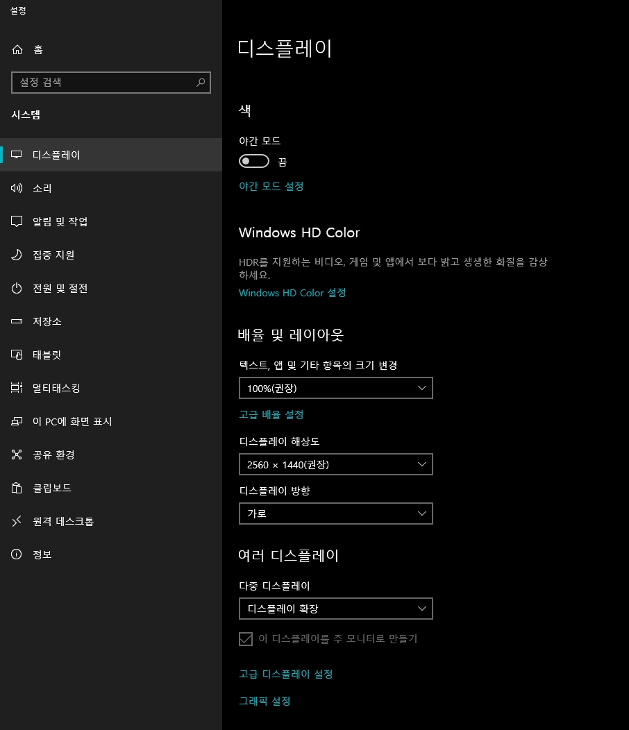 1. 듀얼모니터 식별번호 주모니터 설정방법