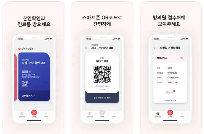 모바일 신분증을 가지고 다니는 것이 어느 기관에서나 공통적으로 사용이 가능하기 때문에 편리하지만 모바일 건강보험증 역시 병원에서 신분 확인이 가능하기 때문에 필요하신 분들은 애플 앱스토어 또는 구글 플레이 스토어에서 본인의 휴대전화 기종에 맞게 앱을 설치하시기 바랍니다.