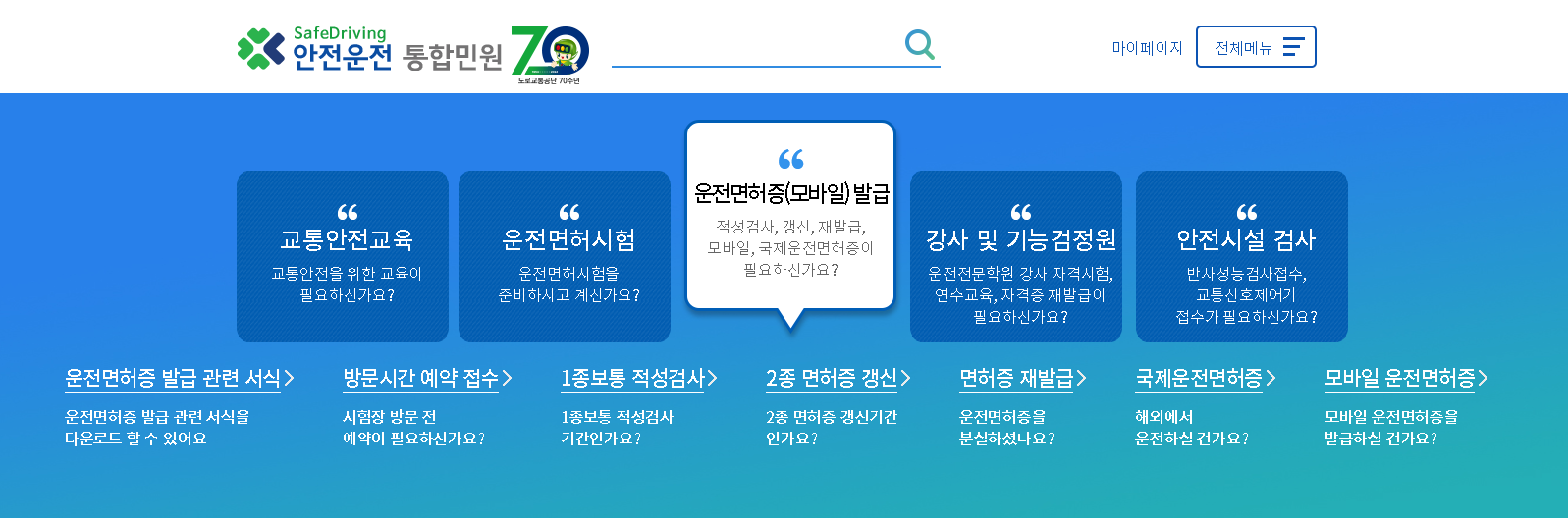 1) 안전운전통합민원 홈페이지 도는 운전면허증시험장, 경찰서 방문을 통해서 IC운전면허증 신청이 가능합니다.