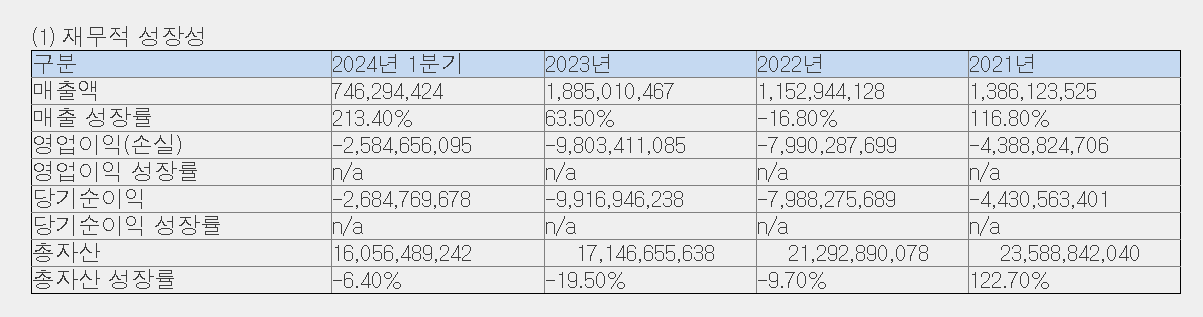 아무리 기술특례상장이라고 하지만 3년 연속 영업익은 바닥 수준이고 2025년부터 흑자 전환을 예상한다고 그냥 말은 합니다.