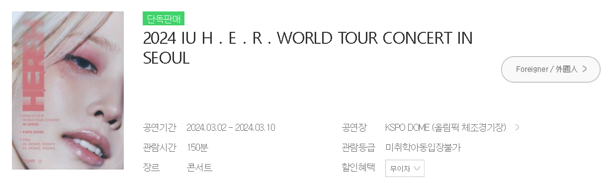 2024.01.25(목) 20시~23시 59분까지 예매가능