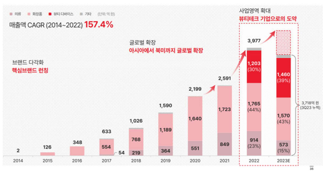 에이피알은 김희선과 유재석을 모델로 활용해서 많은 인지도를 높인 피부미용기기 업체입니다. 현재도 미래 사업 선점을 위해서 뷰티테크 기업으로 전환을 아주 빠르게 진행중입니다.