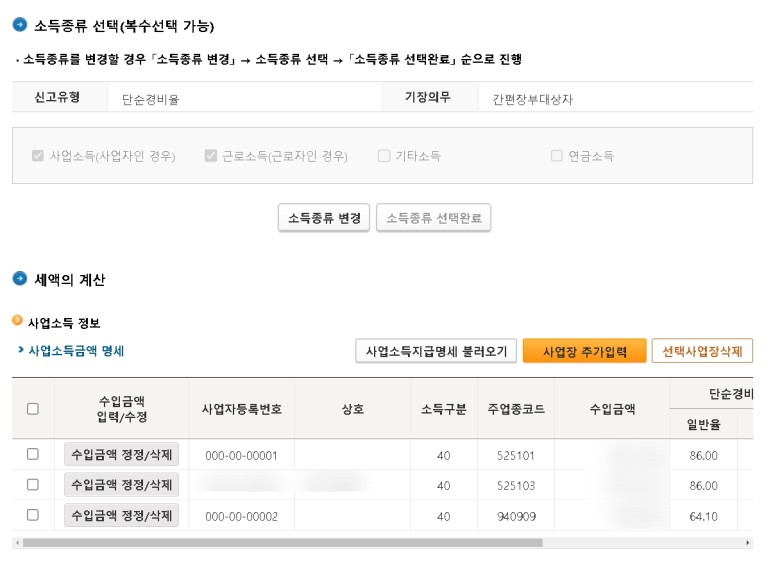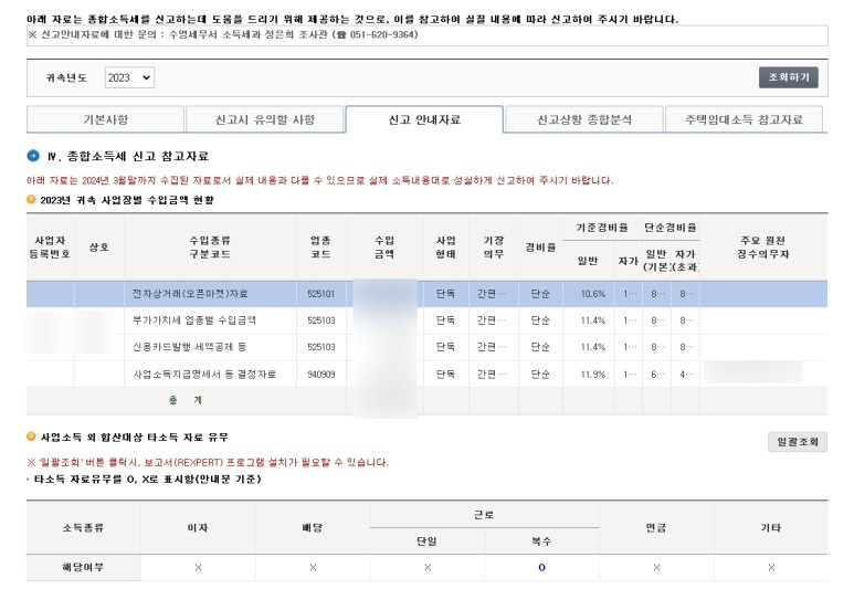신고하기 전에 반드시 세부 수입내용을 확인해서 해당 내용을 기본으로 해서 신고를 하도록 합니다.