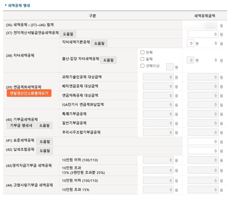 자녀세액공제와 연말정산간소화 불러오기까지 해서 최대한 많은 내용을 반영합니다.