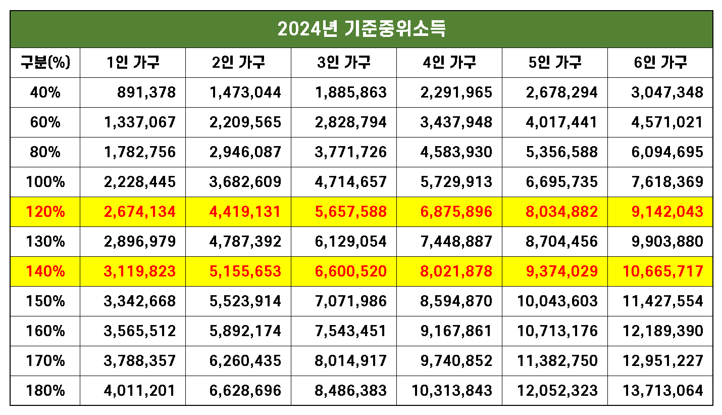 2024년 기준중위소득 분류표는 아래 내용을 참고하세요.