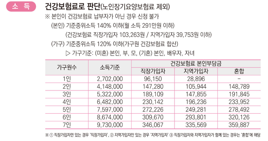 소득: 본인이 건강보험료 납부자인 경우만 신청 가능합니다.