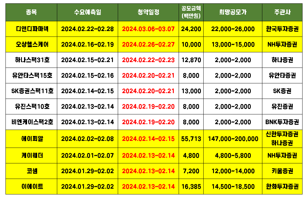 1. 2024년 2월 공모주 청약일정