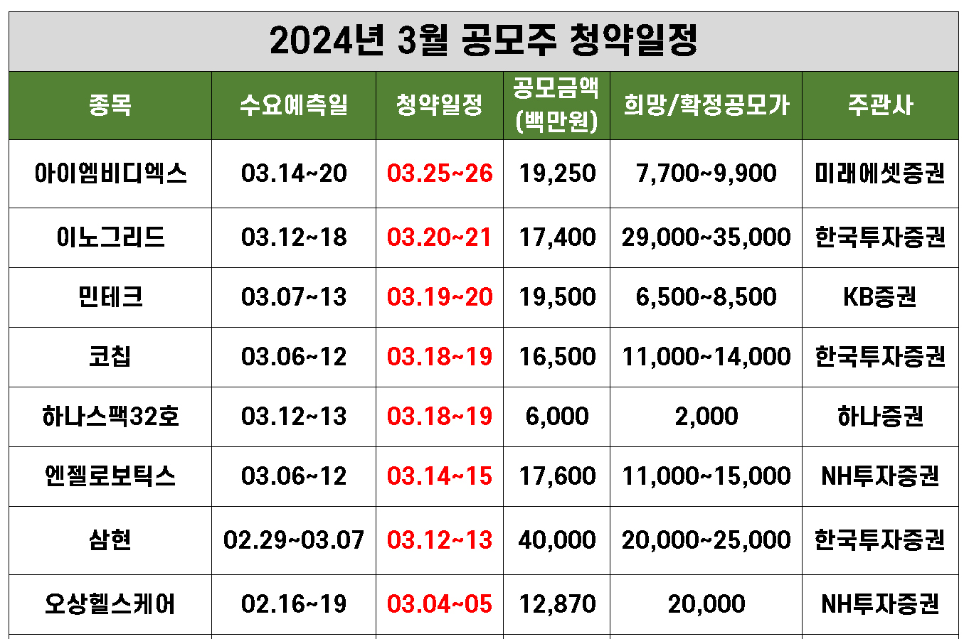 1. 2024년 3월 공모주 청약일정 공모정보