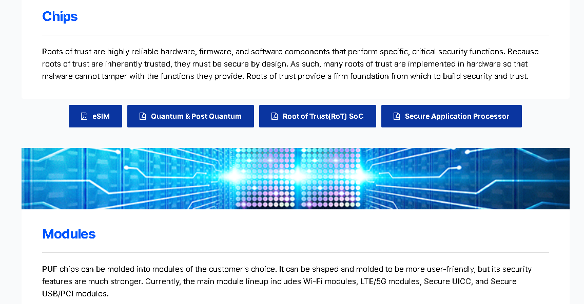 글로벌 보안 트렌드에 맞춰서 독자적인 보안 IP 기반 소프트웨어를 중심으로 특히 반도체 회사에서 해킹 위협에 대응하기 위해서 경쟁력 있는 보안칩을 공급하는 보안 반도체 설계 전문회사입니다.
