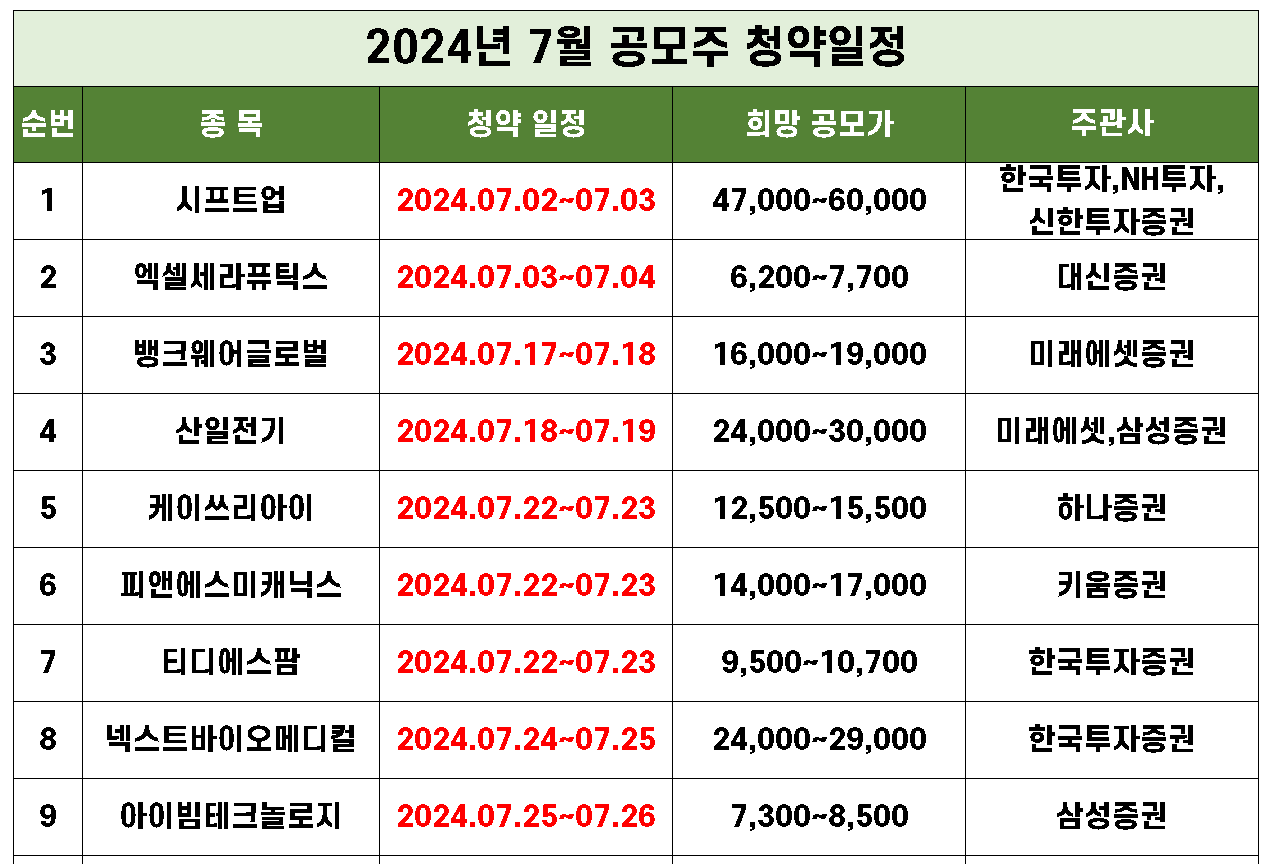 2024년 7월 공모주 청약일정 공모정보 총정리