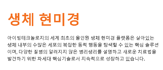 업종 및 아이템: 전자부품 제조업, 생체 현미경 제조 및 판매